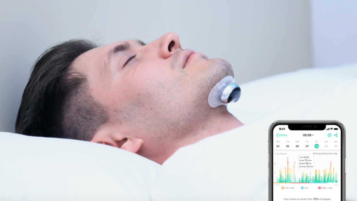 A high-precision sensor and patented intelligent algorithm detects snoring and emit a small, harmless electrical current to stimulate the nerves under the chin, causing the muscles around the throat to tighten to open an airway, thus preventing snoring.